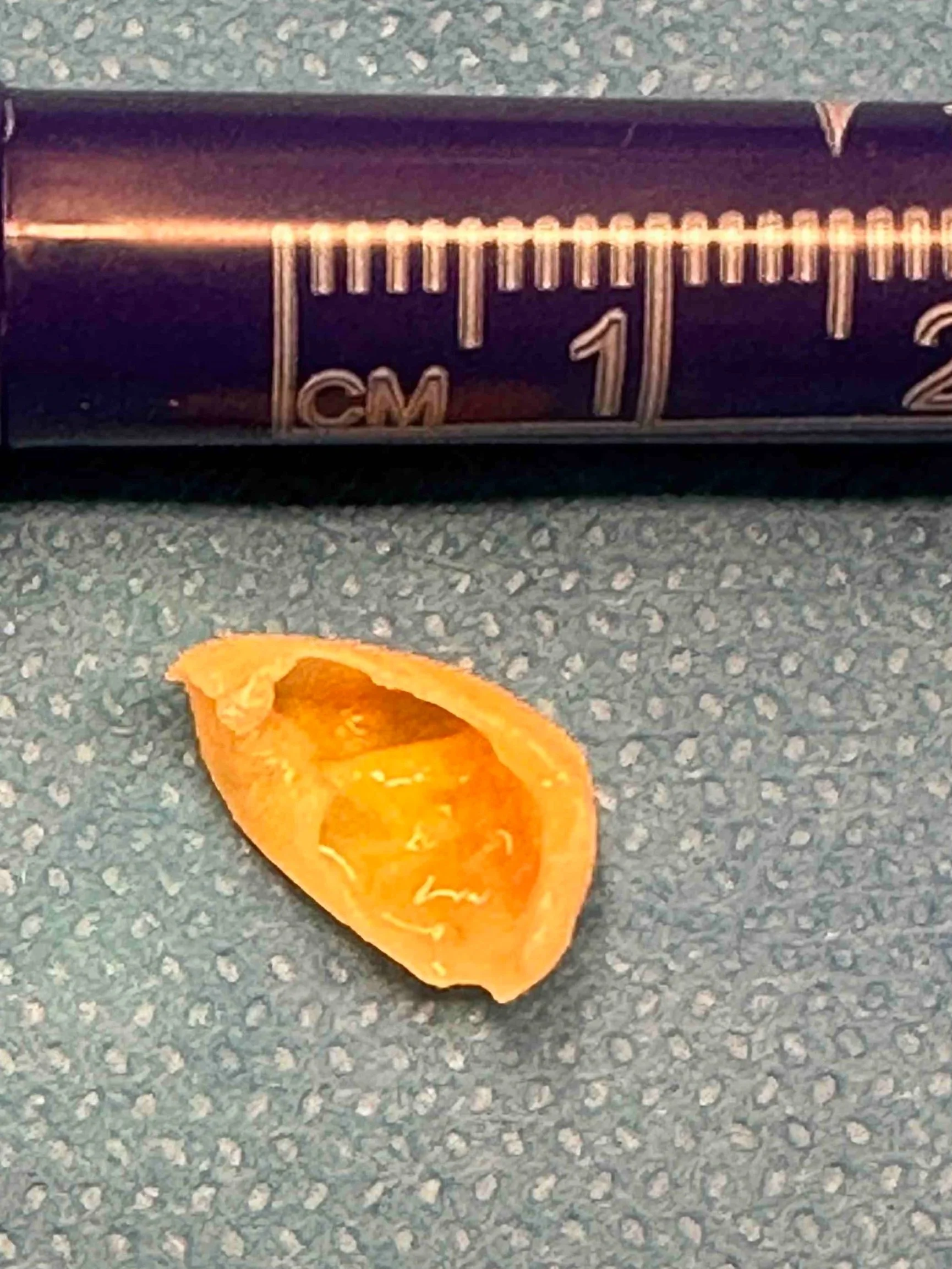 De foto toont de helft van een doorgesneden facet cyste