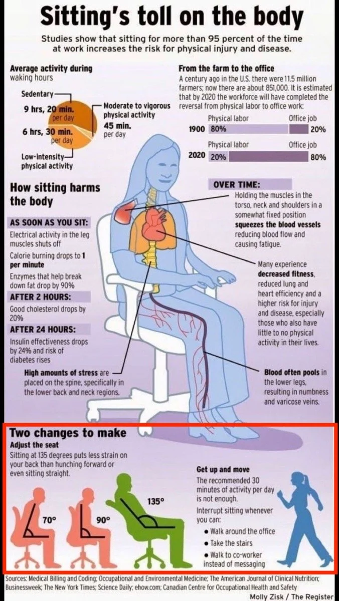 Het frequent en rechtop zitten betekent een een grotere druk op de rug (discussen) en verhoogt het risico op een snel recidief discus hernia !